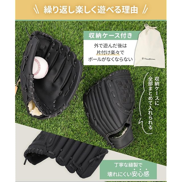 商品名:FamBloom 野球グローブ 野球ボール 軟式 キャッチボールセット 子供 大人 親子 野球 グローブ 軟式野球ボール 練習用 トレーニング (ブラック)
