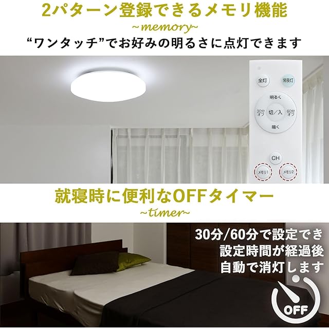 【安心のOFFタイマー】就寝時に便利なOFFタイマーは30分、60分で設定できます。設定後、自動で消灯するので、節電・消し忘れ防止に役立ちます。