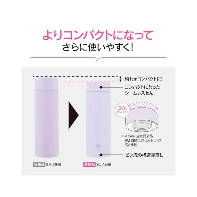 象印 水筒 480ml 【進化した象印の定番マグ】 食洗機対応 シームレスせん 洗う点数2点のみ コンパクト 保温・保冷 スクリュー サンセットベージュ SU-AA48-CP | Trend Design BASE店