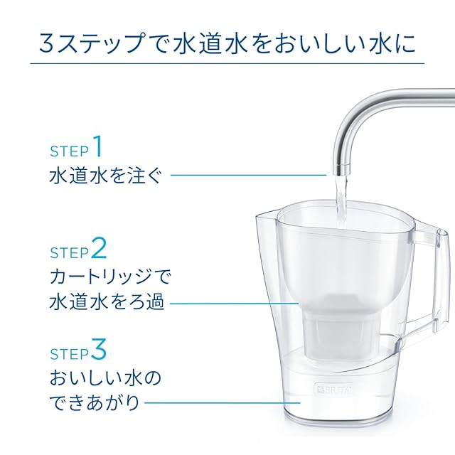 ブリタの浄水器を1年間使用すると約3万円おトク *1日あたりペットボトルを1本(2L)、1年間で365本(730L)の水を利用した場合。 【ブリタのカートリッジ】カートリッジの1Lあたりのコスト:11円×730L=8,030円 【ペットボトル】2Lペットボトルの価格:101円×365日=36,865円 小売物価統計調査(動向編)より(東京都区部小売価格、2022年1月〜2022年12月平均価格) ・上記はすべて税抜価格を前提に算出しました (2024年3月時点)