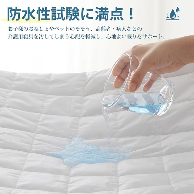 【しっかり防水】裏面のTPU防水素材は布団やマットレスへの水分浸透や汚れを防ぎ、お子様のおねしょやペットのそそう、高齢者・病人などの介護用寝具を汚してしまう心配を軽減し、清潔・衛生的に保ち、心地よい眠りをサポート。