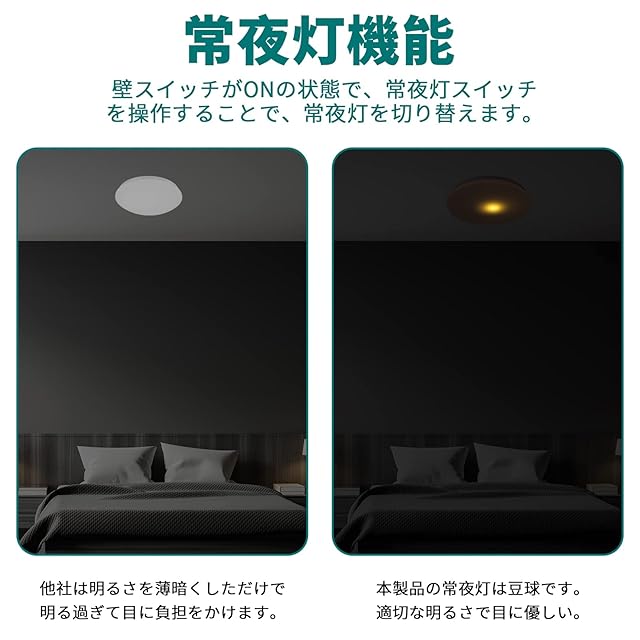 【常夜灯モード、記憶機能、タイマー機能】低消費電力の常夜灯付いており、一人寝て始めてのお子様の部屋また夜間授乳、お年寄りの看護などに最適です。 タイマー機能を設定すると、自動的にシャットダウンできます。電気の節約になり、電源を切るのを忘れたり、電気をつけたまま寝てしまう人に適しています。 記憶機能は選択した明るさを記憶できるので、再び点灯すると同じ明るさを維持します,わざわざ調節必要がなくて。ランプ交換の手間が少ないのも便利です。