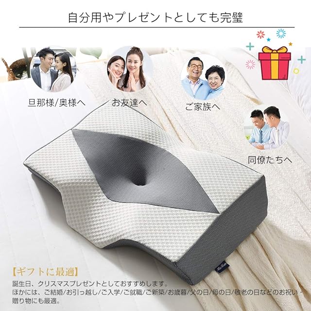商品名:MyeFoam 枕 安眠 肩がラク 低反発 まくら 凹型の中空設計 頭が安定し 首や肩の負担にならない 高さ調整可 仰向き 横向き 父の日 母の日 記念日 誕生日プレゼント 洗える枕カバー ダークグレー