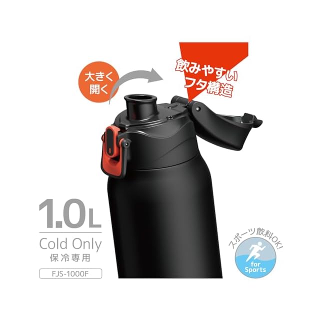 商品名:サーモス 水筒 真空断熱スポーツボトル 1L ブラックオレンジ 保冷専用 子供用 ポーチ付き 肩に優しいストラップ FJS-1000F BKOR