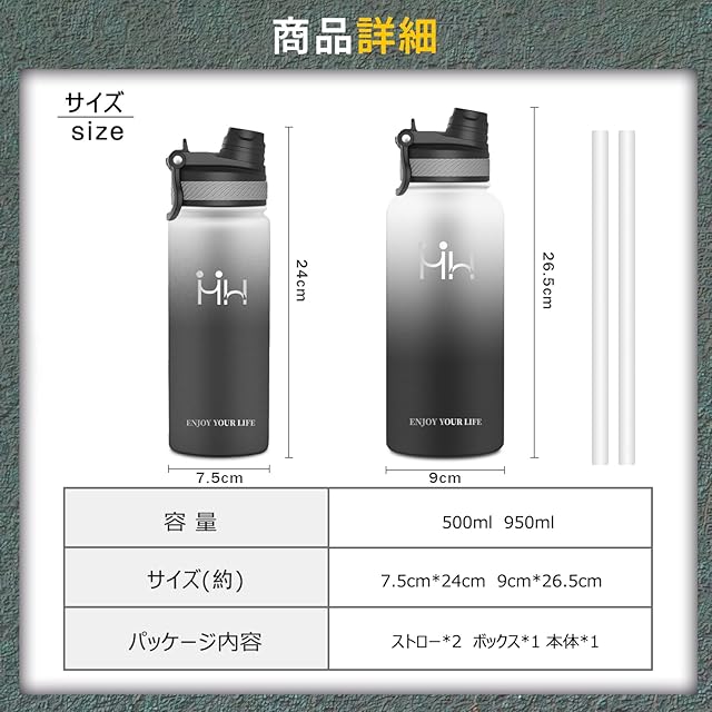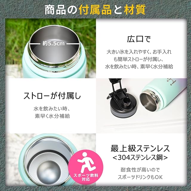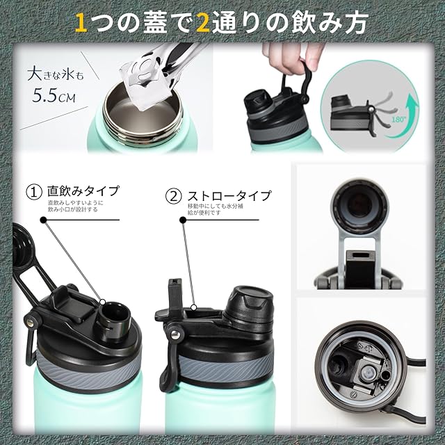 【ストロー付きで直飲み可能】 ストロー付きのキャップにより、直飲みが可能で、運動中や移動中でも手軽に水分補給ができます。また、ストローは取り外し可能で、洗いやすく衛生的です。