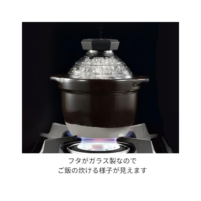 【炊き上がり具合が見える耐熱ガラスフタ】透明な耐熱ガラスフタなので、ご飯が炊けていく様子が見えます。フタを取らずに中の様子が見えるので、蒸気を逃さず食べごろを確認できます。