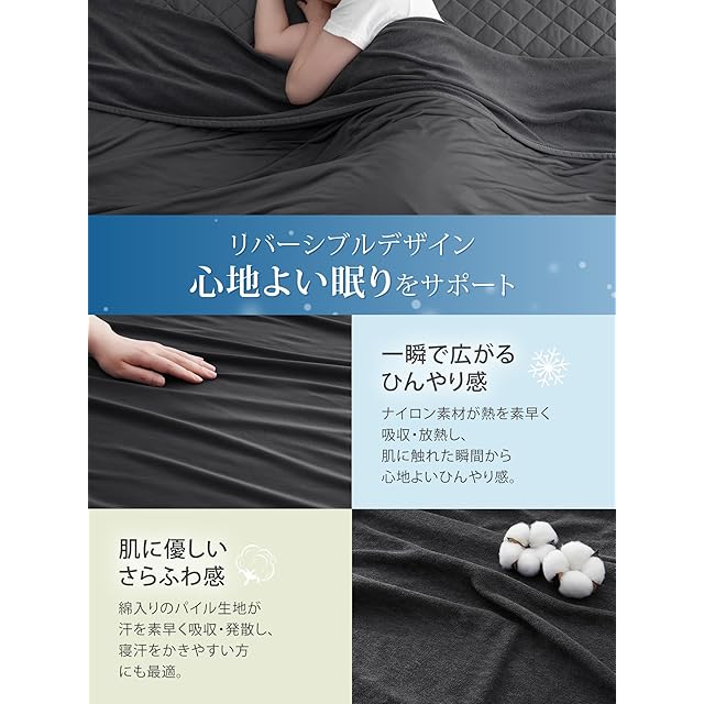 【ロングシーズン使え】さらっとした冷感生地&優しく柔らかなタオル地とリバーシブルなので、気温や体調に合わせて使い分けることでロングシーズンお使いいただけます。