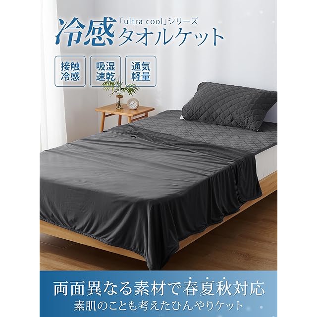 商品名:クモリ(Kumori) タオルケット 超冷 シングル リバーシブル 「ULTRA COOL」 ひんやり 接触冷感 さらふわ タオル地 夏用 吸汗 速乾 丸洗いOK ムレない 柔らか 軽量 3シーズン使える ブランケット クールケット 節電対策 140X190cm ダークグレー