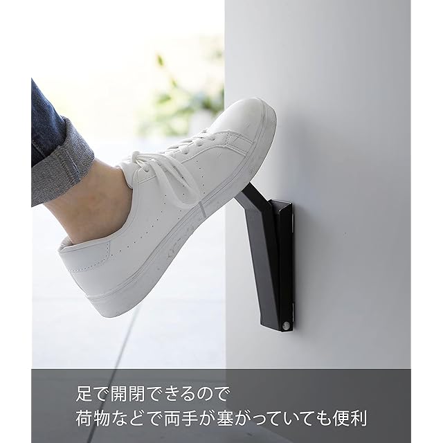 山崎実業(Yamazaki) マグネット 折り畳みドアストッパー ブラック (使用時)約W4.5×D7×H28cm タワー tower 強力マグネット 簡単取付 玄関ドア 片足で操作可能 3721 | Trend Design BASE店