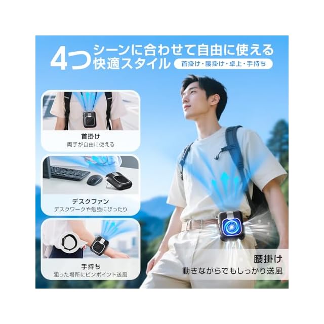 ✅【4WAY多機能ファン - 首掛け・腰掛け・卓上・手持ち】1台4役の万能 携帯扇風機 となり、✅ 首掛け扇風機 として:両手が自由に使え、通勤や外出時にも快適。✅ 腰掛け扇風機 として:作業中でもしっかり送風。アウトドアやイベント会場でも大活躍。 ✅ 卓上扇風機 としてデスクワーク中のリフレッシュに最適。✅ 手持ち扇風機 として:ピンポイントで狙った場所をクールダウン。シーンに合わせた使い方ができるから、この 小型扇風機 なら、猛暑日も快適に過ごせます。