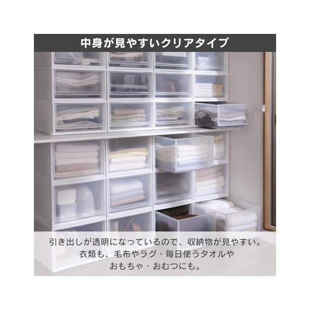 【3個セット】アイリスオーヤマ 収納ケース 衣替え 引き出し クローゼット 圧倒的高コスパ 衣替え 幅39×奥行50×高さ23.2cm ウォークインクローゼット 衣装ケース チェスト 日本製 ホワイト/クリア BC-L | Trend Design BASE店