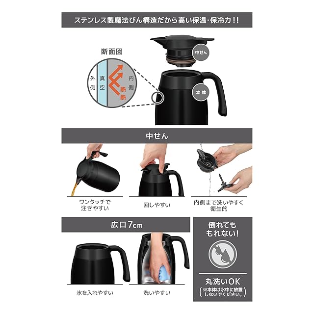商品名:サーモス ステンレスポット 1.5L マットブラック 保温ポット 卓上ポット 魔法びん構造 保温保冷 TTB-1501 MTBK