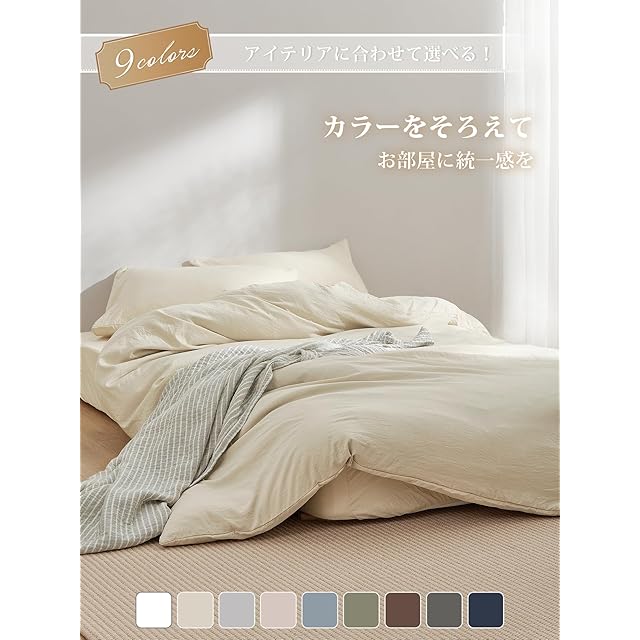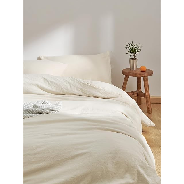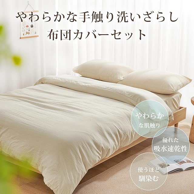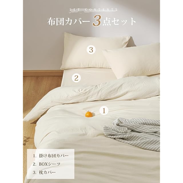 クモリ(Kumori) 寝具カバーセット 布団カバーセット 洗いざらし シワ加工 水洗い やわらか (掛け布団カバー ボックスシーツ 枕カバー)吸水速乾 丸洗いOK 肌に優しい 洗える 無地 シンプル オールシーズン(シングル・3点セット アイボリー) | Trend Design BASE店