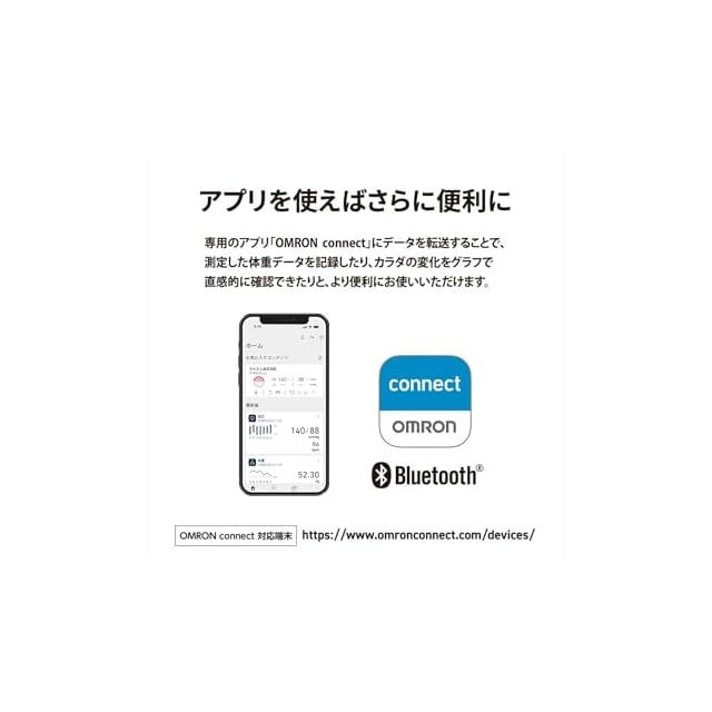 測定した体重値をスマートフォンで簡単にデータ管理できる通信機能付き体重計