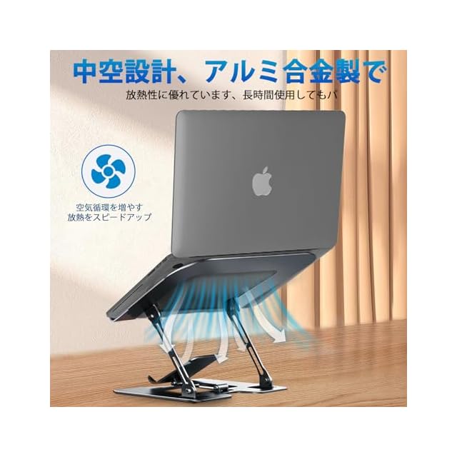 【効果的な放熱&全面保護】中空放熱設計とアルミニウム合金素材により、ノートブックスタンドの放熱性が向上します。長時間の使用でもノートパソコンの温度上昇を効果的に防ぎます、パソコンの使用寿命を延ばし、ノートパソコンはより速く運行することができます。他社製品と比べ、ノートパソコンと接触する部分はすべてシリコン製、さらに底部には4つのゴムマットと滑り止め装置があり、ノートPCスタンドの安定性を確保しながらコンピュータを保護。