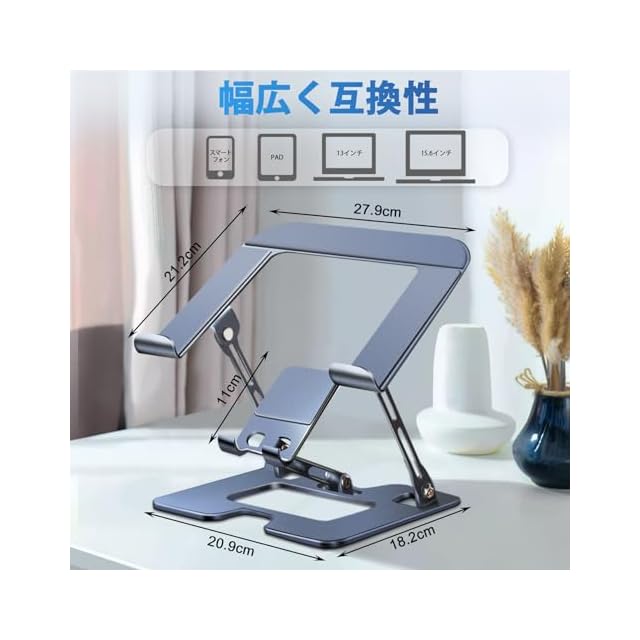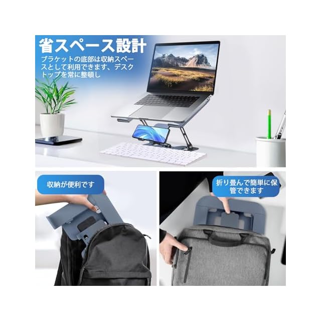 【携帯に便利&省スペースです】当社のラップトップスタンドは軽量で折りたたみ可能です、持ち運びや収納が簡単で。オフィス、自宅、外出先など、さまざまなシーンで活躍します。底部スペースキーボードや文房具の収納にも利用可能で、作業エリアを整頓し、使用スペースの効率を向上させます。お客様の気持ちは弊社にとってとても大切です、何かご質問がございましたら、いつでもご連絡ください。私たちは最善のサービスを提供するために最善を尽くします、一年間の期をお約束致します。