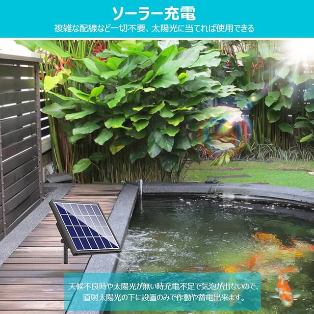 Biling ソーラーポンプ ソーラー エアーレーション エアーポンプ 電源不要 屋外使用可能 水槽ポンプ 池ポンプ ウォーターポンプ 太陽光発電 酸素供給 取付簡単 各種水槽の酸素供給 ビオトープ/庭池/生け簀/アクアリウム/魚タンク | Trend Design BASE店