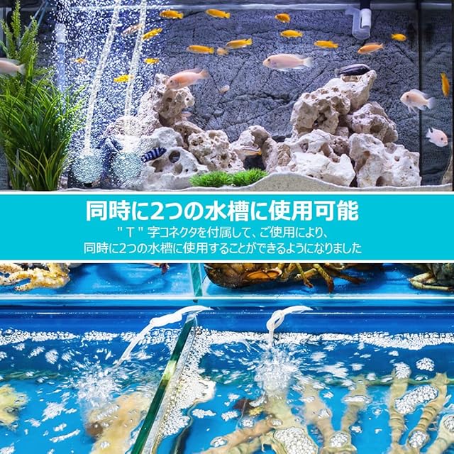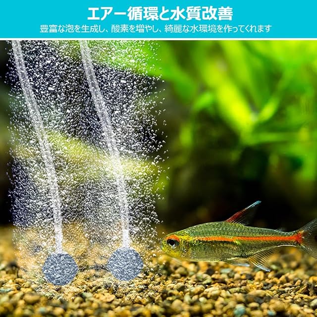 [空気循環]エアーポンプによる空気循環で水質悪化を防ぐ、水槽内の酸素不足も防ぐ,水槽内の酸素不足はメダカや熱帯魚やエビなどの生き物の生死に直結しますなのでエアーポンプは酸素不足を防ぐことができます。
