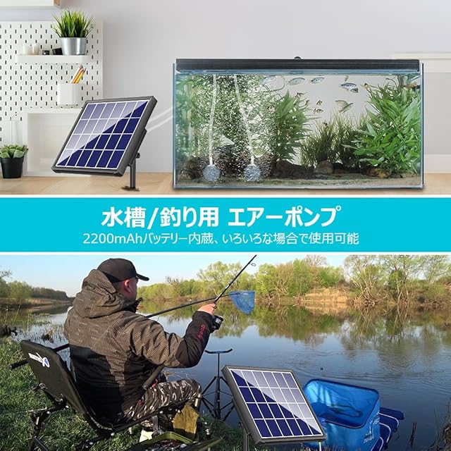 Biling ソーラーポンプ ソーラー エアーレーション エアーポンプ 電源不要 屋外使用可能 水槽ポンプ 池ポンプ ウォーターポンプ 太陽光発電 酸素供給 取付簡単 各種水槽の酸素供給 ビオトープ/庭池/生け簀/アクアリウム/魚タンク