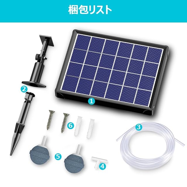 商品名:Biling ソーラーポンプ ソーラー エアーレーション エアーポンプ 電源不要 屋外使用可能 水槽ポンプ 池ポンプ ウォーターポンプ 太陽光発電 酸素供給 取付簡単 各種水槽の酸素供給 ビオトープ/庭池/生け簀/アクアリウム/魚タンク