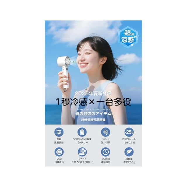 ✅【2025年新登場・-25℃冷感プレートで瞬間冷却、携帯扇風機を超える涼しさ】 この携帯扇風機は最新の冷感プレート技術を採用しており、首元に冷感プレートを直接あてることで、通常のハンディファンでは感じられない瞬時の冷却効果を実現。数秒で冷たさを感じることができUSB扇風機、暑い夏の日でも快適に過ごせます。屋外や移動中でも手軽に涼しさを提供する優れた冷却機能が、あなたの熱中症対策に最適です。