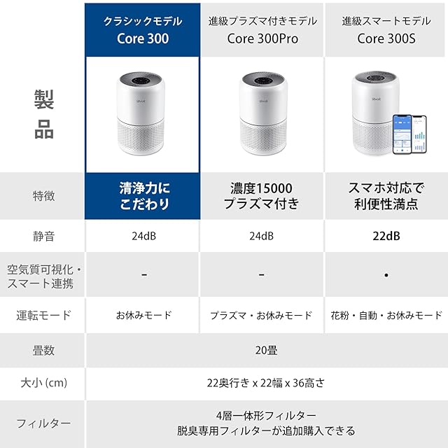商品名:Levoit (レボイト) 空気清浄機 クラシックモデル Core 300 20畳 脱臭 集じん 小型 ペット 花粉 卓上 ハウスダスト hepa フィルター PM2.5 ホワイト