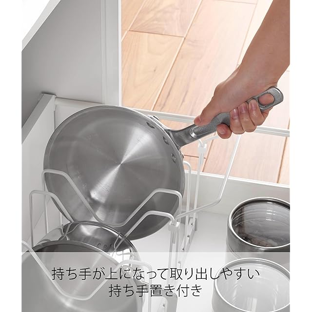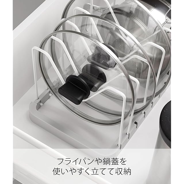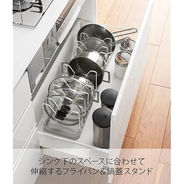 山崎実業(Yamazaki) シンク下 伸縮 鍋蓋 & フライパンスタンド ホワイト 約W45~82×D20×H17.5cm プレート Plate キッチン収納 持ち手置き付 3965 | Trend Design BASE店