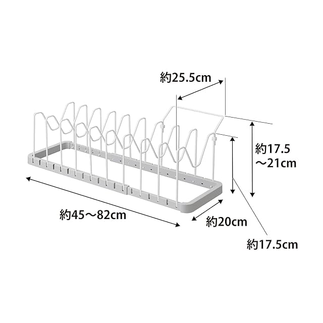 商品名:山崎実業(Yamazaki) シンク下 伸縮 鍋蓋 & フライパンスタンド ホワイト 約W45~82×D20×H17.5cm プレート Plate キッチン収納 持ち手置き付 3965