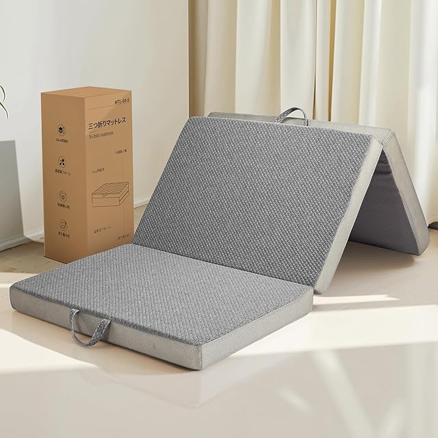 【高反発 硬め190N 密度36D】折りたたみマットレス シングル厚さ10cm Tillmulya 三つ折りマットレス 高反発マットレス 敷き布団高反発 折り畳み 体圧分散 腰痛対策 硬め 抗菌 防臭 ウレタン 通気性 全寝姿勢対応 横寝姿勢 腰への負担 軽減 寝心地 敷布団 シングルサイズ【グレー】 | Trend Design BASE店