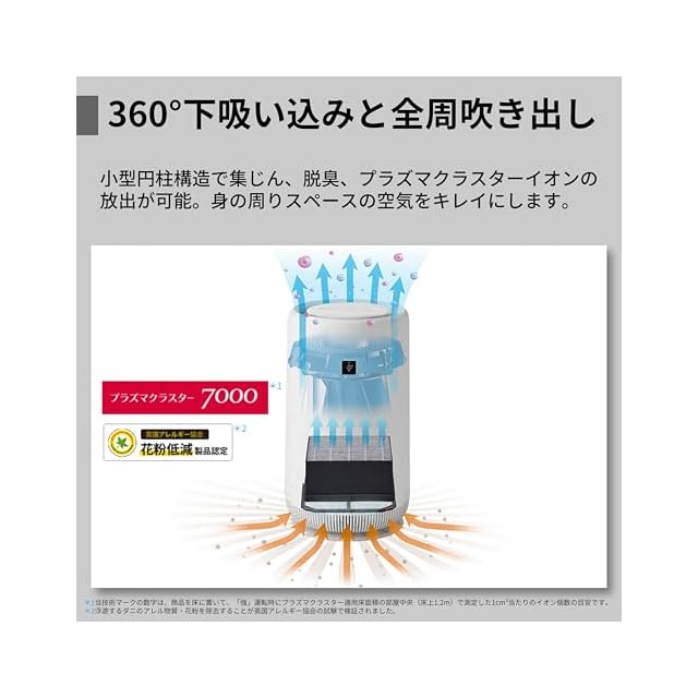 商品名:シャープ 空気清浄機 FU-SC01-W プラズマクラスター 7000 おすすめ畳数 6畳 360°下吸込み ナイトライト コンパクトタイプ