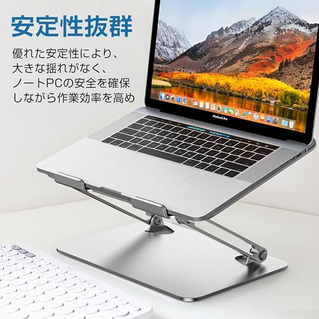 商品名:ノートパソコンスタンド 折りたたみ式 PCスタンド【人間工学設計】ノートpc スタンド 無段階高さ角度調整 腰痛&猫背 滑り止めゴム 放熱対策 合金製 在宅仕事 ZOOM会議 Macbook/iPad/ノートPCなど15.6インチまでに対応 外付けキーボードをお勧めです