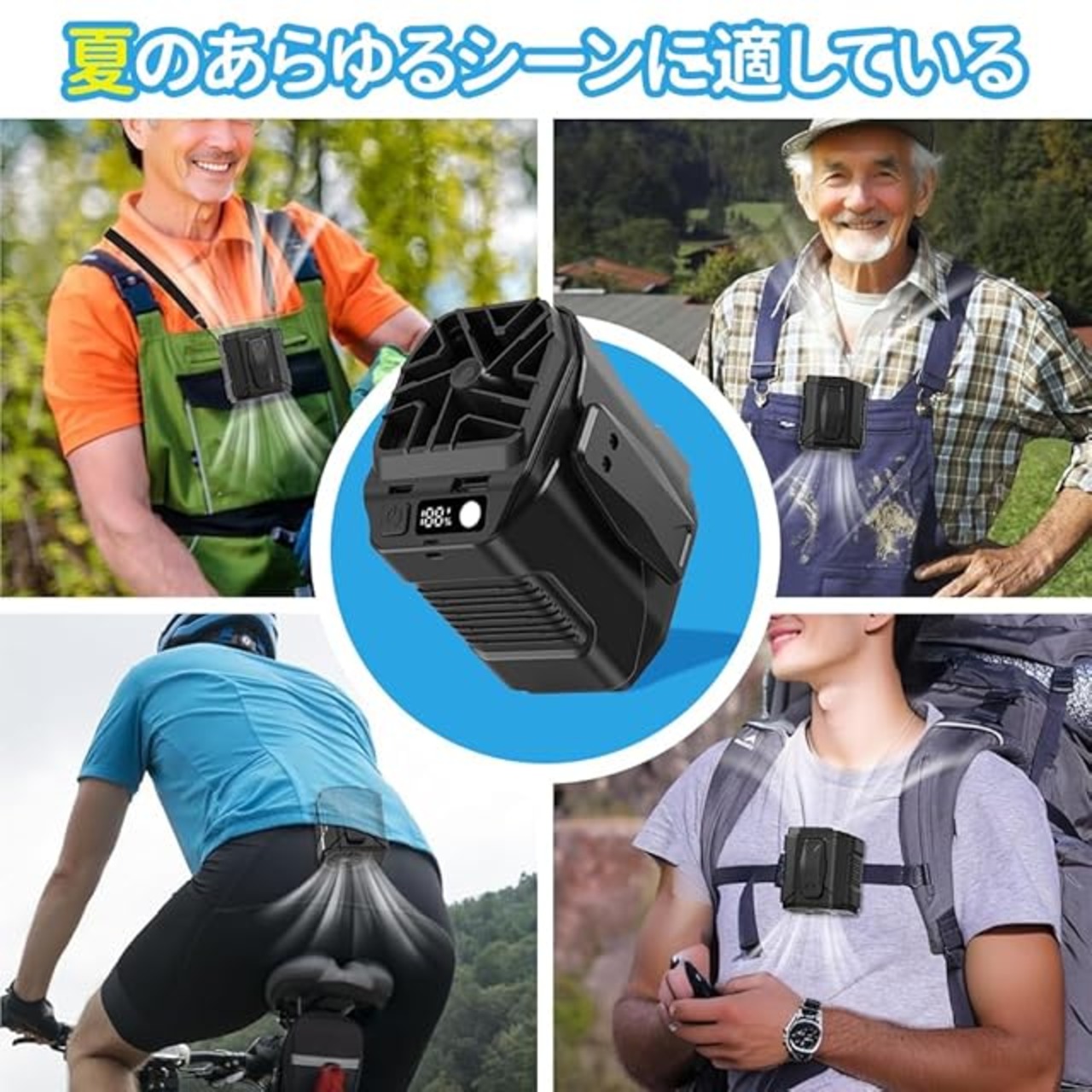 【10000mAhバッテリー内蔵・モバイルバッテリー機能付き】このベルトファンは、10000mAhの大容量バッテリーを内蔵し、Type-Cケーブルが付属しており、一回のフル充電で最大20時間まで連続送風可能、頼もしい電池持ちで一日中快適に。(弱風/20時間、中風/8時間、强風/4 時間)暑い夏の日でも、USB電源に接続して爽やかな風を楽しむことができます。内蔵USBポ一トし、地震、台風、災害、山登り、アウトドア停電などの非常時のモバイルバッテリーとしても使えます。超コンパクトなサイズで、バッグにすっぽり収まるので、持ち運びがとても楽です。作業中やスポーツなどの場合に勧めします。