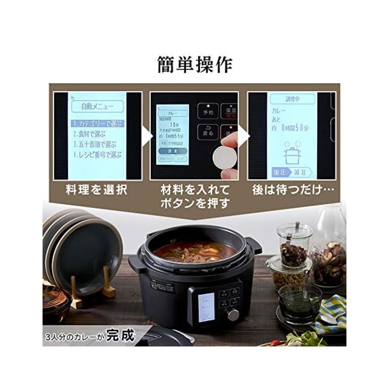 アイリスオーヤマ(IRIS OHYAMA) 電気圧力鍋 圧力鍋 4L 3~4人用 低温調理可能 卓上鍋 予約機能付き 自動メニュー90種類 ガラス蓋付き レシピブック付き ブラック PMPC-MA4-B | Trend Design BASE店