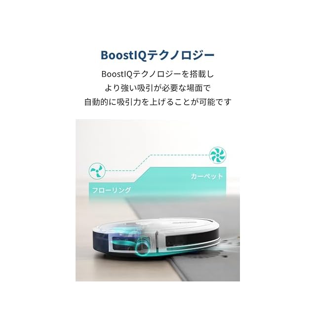 BoostIQテクノロジー:Eufyの独自技術BoostIQテクノロジーにより、カーペットのような強い吸引が必要な場面で、自動的に吸引力を引き上げます。