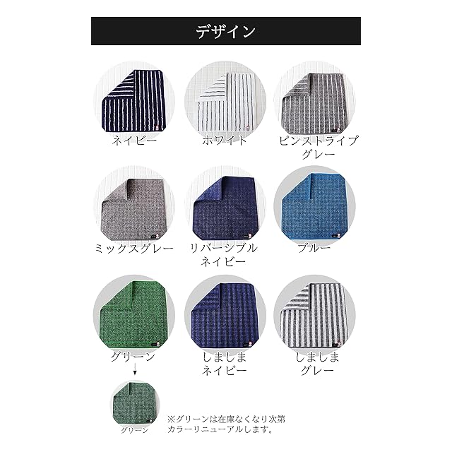 サイズ:約25cm×25cm 重量:約25g/枚 デザイン(認定番号):ネイビー(第2021-1129号)、ホワイト(第2022-1032号)、ミックスグレー(第2021-918号)、ピンストライプグレー(第2021-917号)、リバーシブルネイビー(第2022-1326号)、ブルー・グリーン(第2022-1325号)、しましまネイビー・しましまグレー(第2022-2634号)、テールグリーン・ブラック(第2023-2689号)、無地Aアソート4枚(第2021-945号) 素材:綿100% 生産地:日本(愛媛県今治市) ※モニターの発色の具合により実際のものと色が異なる場合がございます。 ※清潔でコンパクトな圧縮パックでお届けいたします。開封してしばらくすると空気を含み、元の状態に戻ります。配送状態により元に戻っている場合がございます。