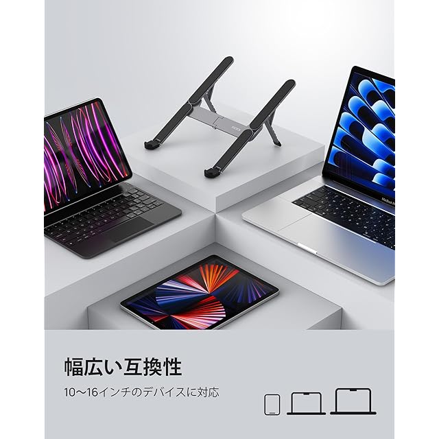 ⭐【対応機種】Macbook/Macbook Air/ Macbook Proシリーズ/Surface/Surface Proシリーズ/Surface Book/iPad Pro/Sony/HP/Kindle/HUAWEIなど10-16インチのデバイスに対応しております。ipadや液タブを載せるのもよいです。パケージ内容:1*ノートパソコンスタンド、1*ベルベットの収納袋、1*日本語取扱説明書。
