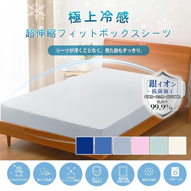 ひんやりボックスシーツ boxシーツ接触冷感 ひんやりシーツ クールボックスシーツ 伸びるベッドカバー 冷感マットレスカバー 夏用BOXシーツ 冷感伸びるシーツひんやり 冷感シーツ ボックスシーツ シングル ボックスシーツ セミダブル ボックスシーツ ダブル 速乾 洗える
