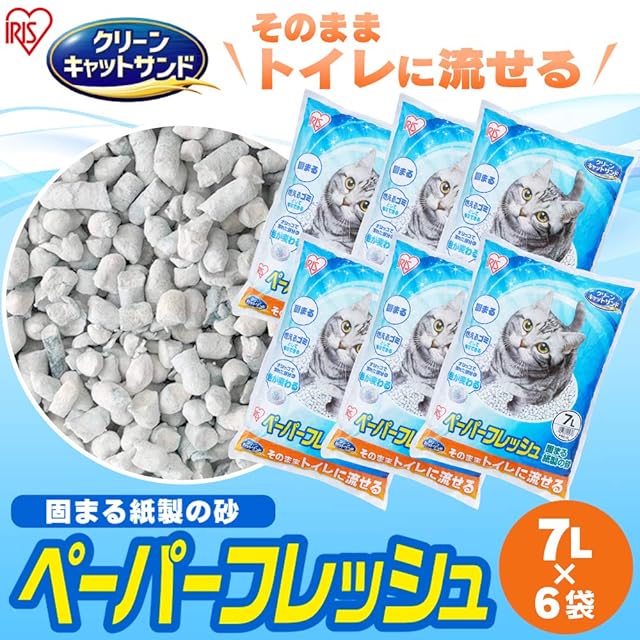 商品名:アイリスオーヤマ 猫砂 ペーパーフレッシュ トイレに流せる 固まる PFC-7L (紙製) 7L×6袋 (ケース販売)