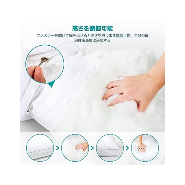 【高さ調整】ファスナーから塡充物を入れたり出したり枕の高さを調整できます。