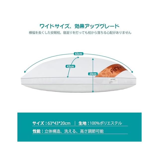 商品名:Anywin 枕 カバー2枚付き まくら 高さ調整可能 高級ホテル仕様 安眠 快眠 丸洗い可能 立体構造