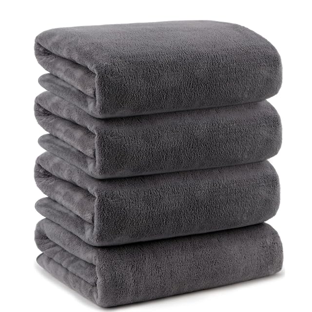 Mofuwa バスタオル セット 【2025年マイベストNo1 ヒアルロン酸 配合】 4枚セット マイクロファイバー 厚手 速乾 小さめ Bath Towel ミニバスタオル (ダークグレー, 4枚 バスタオル) | Trend Design BASE店