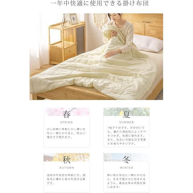 【軽やかで暖か】軽量ながらも保温性に優れた中空ポリエステル繊維を使用しており、暖かさをしっかりとキープします。夏はそのまま、寒い時期には他の布団と組み合わせても最適。軽やかながらもしっかりとした暖かさで、年間を通して快適にお過ごしいただけます。