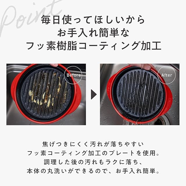 【電子レンジでフライパンで焼いたような本格的な調理ができる!】フタをして電子レンジで加熱するだけで、グリルを使わず魚を焼けてお手入れも簡単。 さらに、焼くだけではなく、煮る、蒸す、炊く、茹でる、炒めるがこの一台できちゃう優れもの!