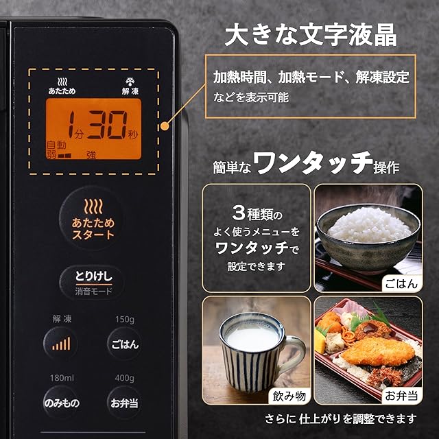 【自動メニュー】「ごはん」や「飲みもの」など、よく使う機能はボタンが別に設けられているため、スムーズに設定できます。手動であたためるといった手間が省けるでしょう!時間と労力を節約!