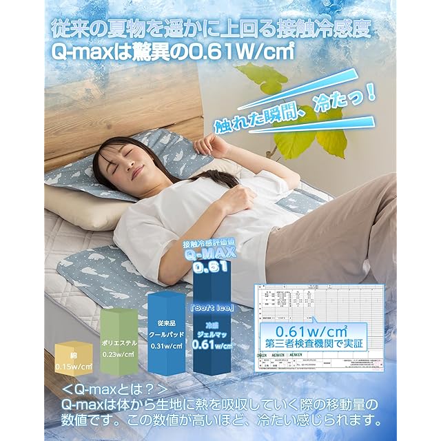 商品名:Colorsroom 冷感ジェルマット ひんやりマット 夏 急速冷却-11℃ Q-max0.61 高分子ジェル「Soft ice」 防水・防菌・防カビ クールマット 夏用寝具 敷きパッド シングル ダブル 冷却シート 塩を超える 冷感マット 人・ペット 暑さ対策 90×140cm シロクマグレー