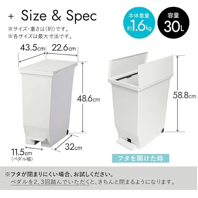商品名:アスベル フタ付きゴミ箱 両開きペダル カウンター下収納可 30L 白 衛生的 A6303