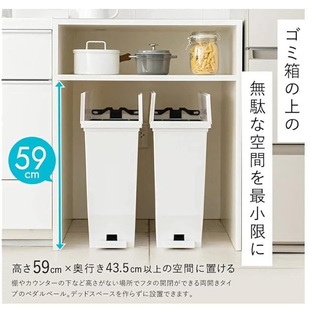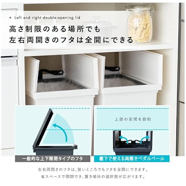 アスベル フタ付きゴミ箱 両開きペダル カウンター下収納可 30L 白 衛生的 A6303