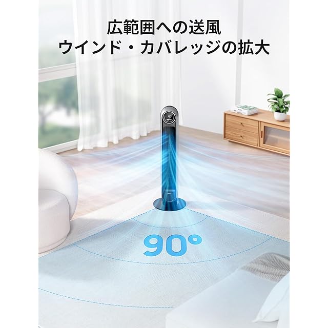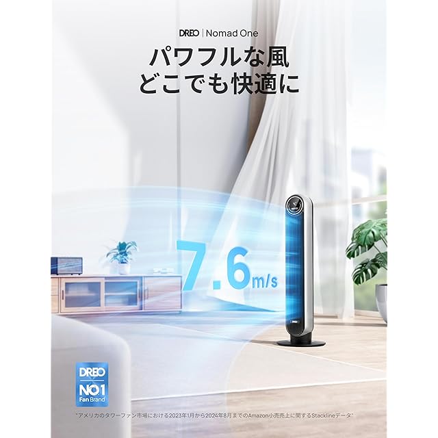 商品名:Dreo 扇風機 タワーファン 静音 左右90°自動首振り パワフル送風 7.6m/s 風量4段階 LEDディスプレイ リモコン付き 8時間タイマー機能付 羽なし おしゃれ グッズ オフィス/脱衣所/寝室/居間用 DR-HTF007 PSE認証済み