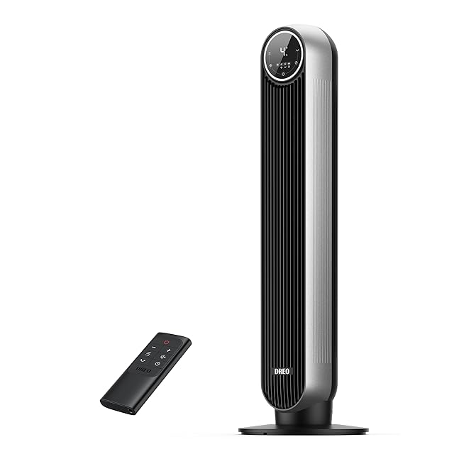 Dreo 扇風機 タワーファン 静音 左右90°自動首振り パワフル送風 7.6m/s 風量4段階 LEDディスプレイ リモコン付き 8時間タイマー機能付 羽なし おしゃれ グッズ オフィス/脱衣所/寝室/居間用 DR-HTF007 PSE認証済み | Trend Design BASE店