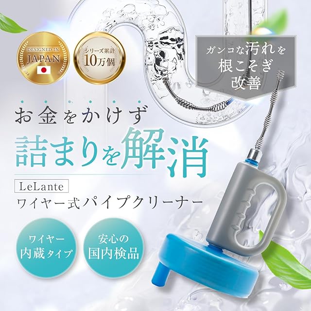 【選ばれる理由】LeLante パイプクリーナー がついに正式販売開始。液体タイプやラバーカップで解消できない詰まりも、ワイヤー で取り除くことが出来ます。本商品はワイヤーをドリルのようにで回転させ、つまりに物理的に干渉し、解消することを目的とした商品です。 状況によっては解消できない場合がありますことをご理解の上、ご使用ください。